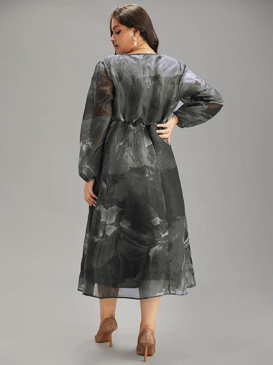 Floral Mesh Patchwork Pocket Elastic Waist Dress