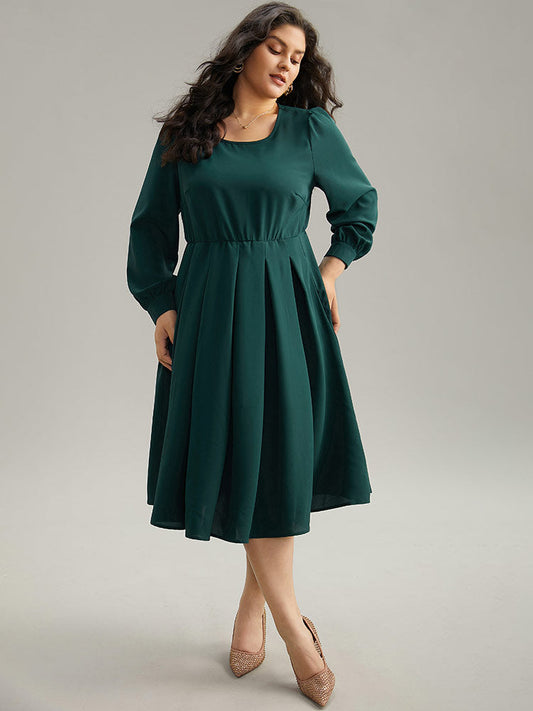 Patchwork Button Through Arc Hem Tab Sleeve Dress