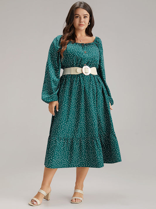 Floral Embroidered Mesh Pocket Lantern Sleeve Dress