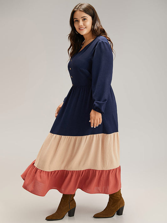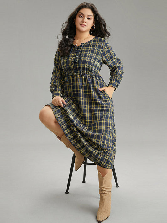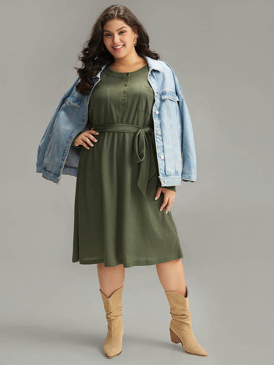 Static-Free Two Tone Wrap Ties Pocket Dress