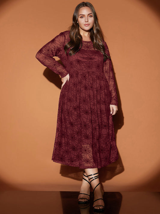 Halloween Spider Web Round Neck Mesh Patchwork Midi Dress