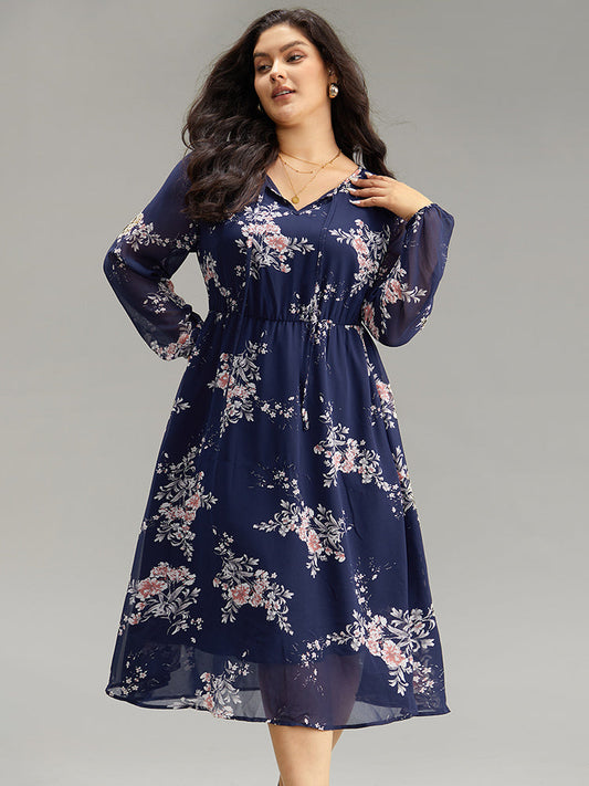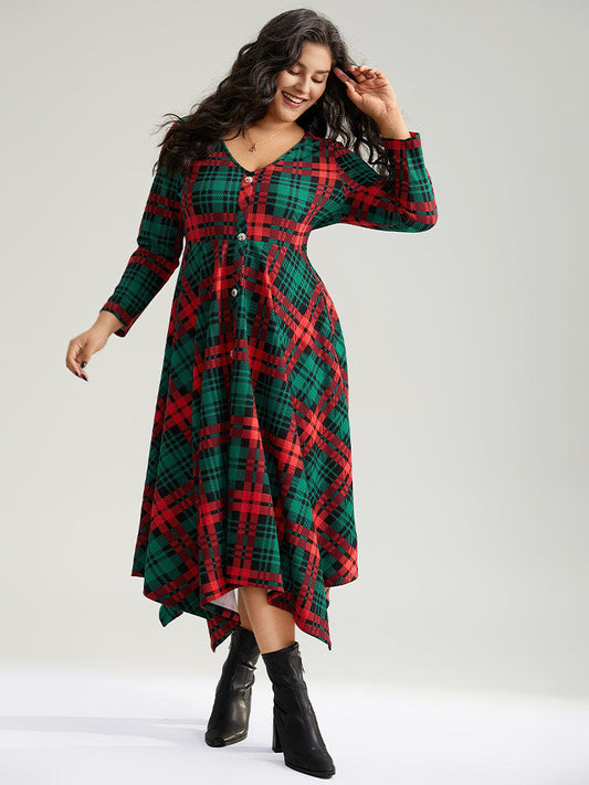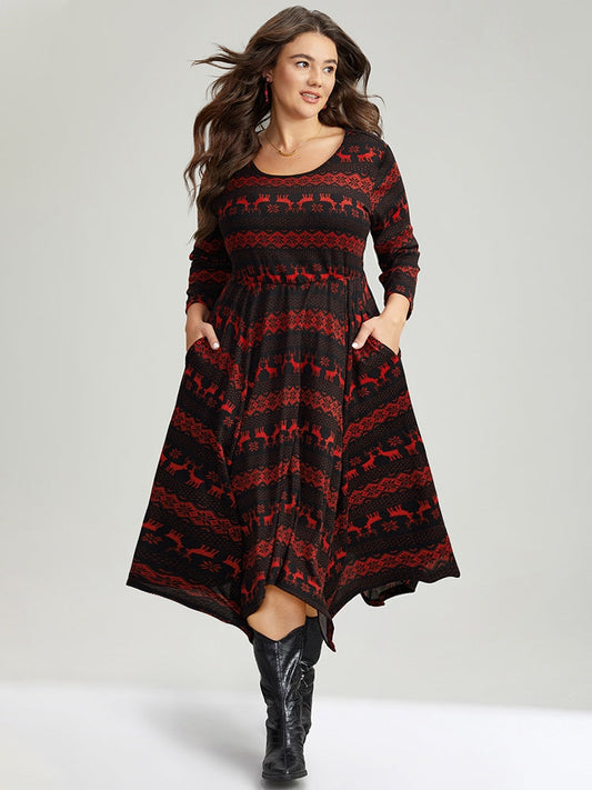 Christmas Elk Elastic Waist Hanky Hem Dress