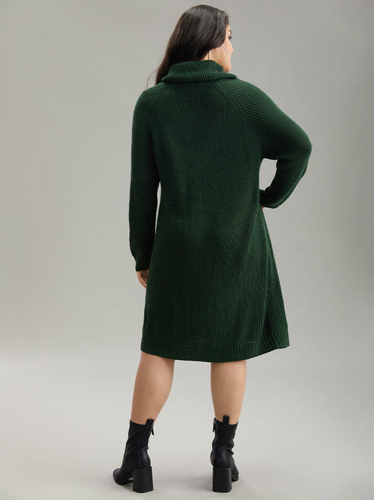 Solid Plisse Turtle Neck Knee Sweater Dress