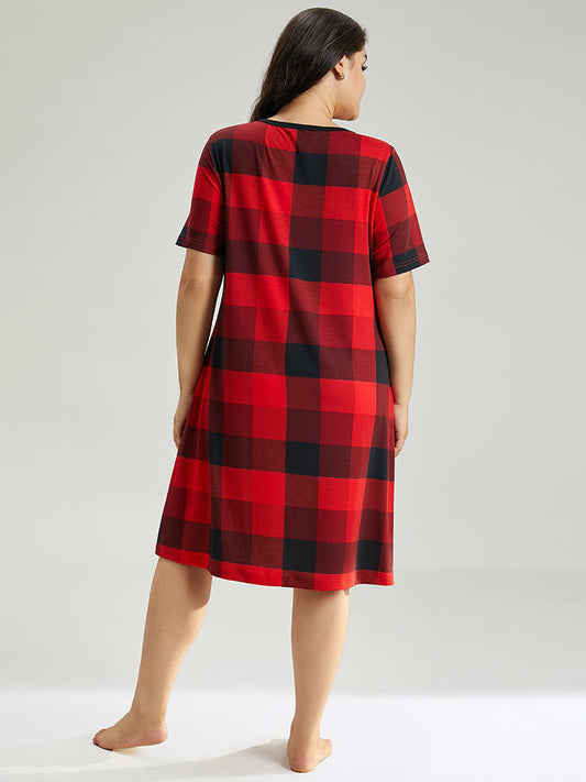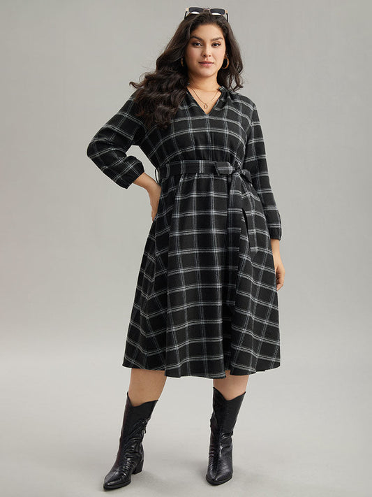 Plaid Patchwork Round Neck Elastic Waist Dress