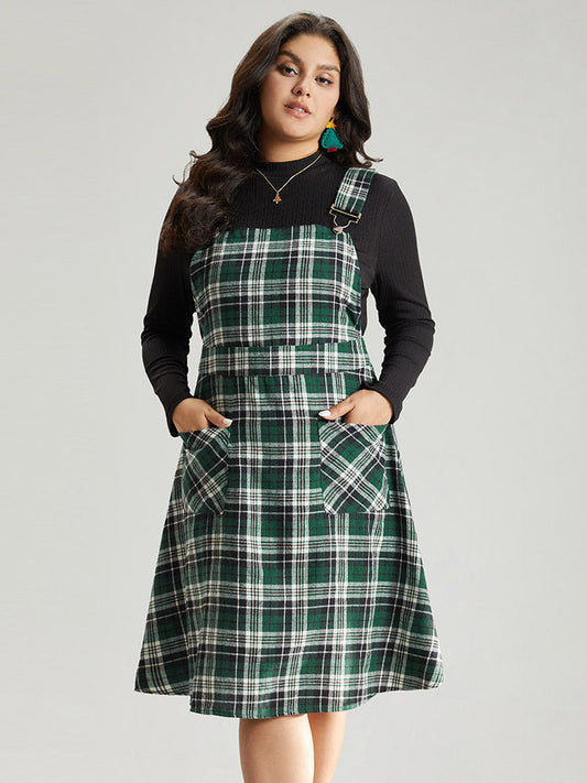 Christmas Plaid Patched Pocket Overall Cami Dress