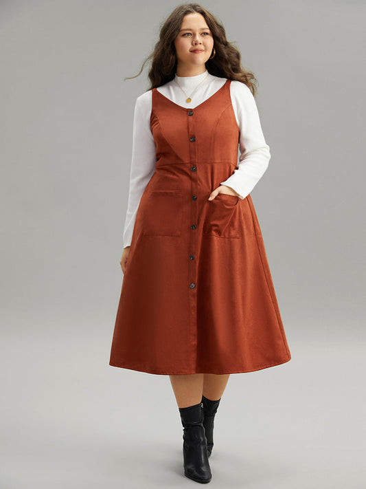 Faux Suede Button Detail Patched Pocket Cami Dress
