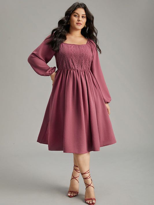 Crochet Lace Square Neck Elastic Cuffs Dress