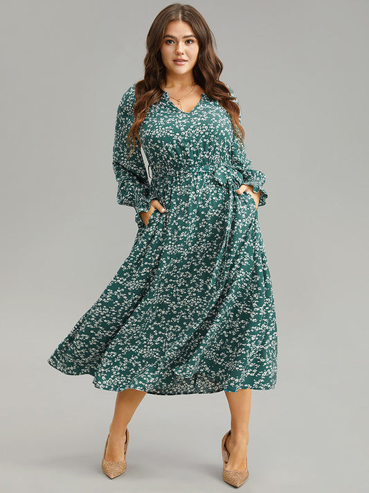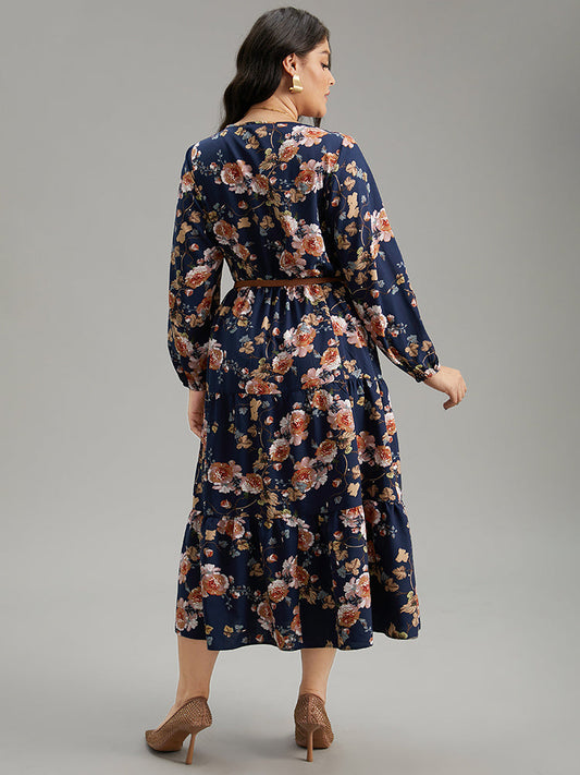 Moroccan Print Shirt Collar Belted Button Through Dress