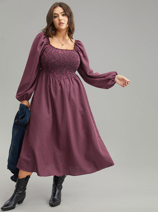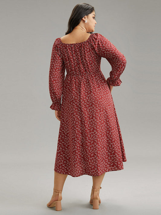Ditsy Floral Square Neck Shirred Gathered Dress
