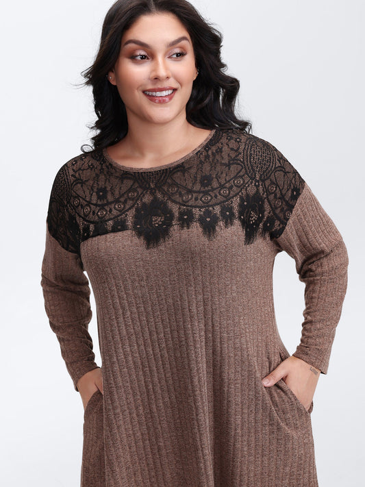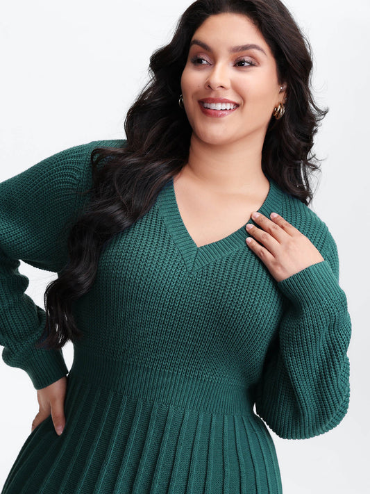 Pleated Skirt Tissue Texture Knit Knee-Length Dress