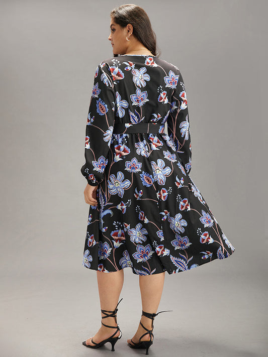 Bandana Print Lantern Sleeve Ruffle Hem Dress
