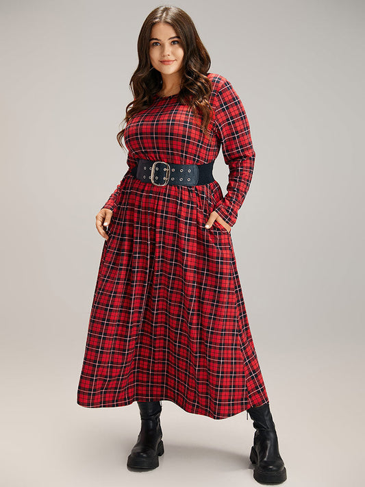 Striped Pocket Patchwork Belted Elastic Waist Dress