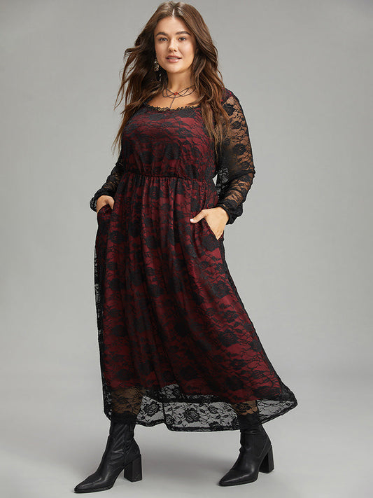 Halloween Rose Crochet Lace Mesh Square Neck Dress