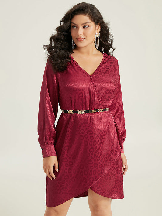 Plain Rib Knit V Neck Wrap Pleated Dress