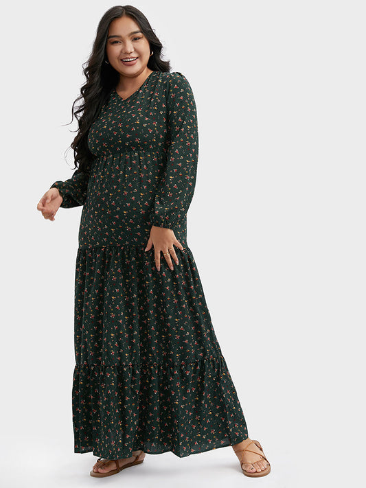 Floral V-Neck Ruffle Maxi Dress