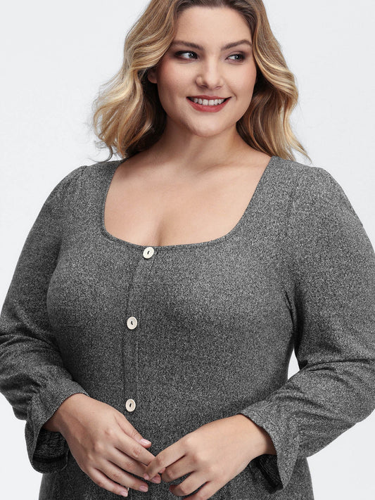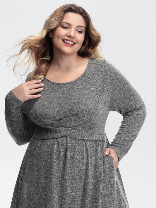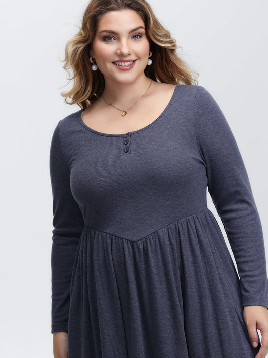 Stretchy Waist Scoop Neck Knit Midi Dress