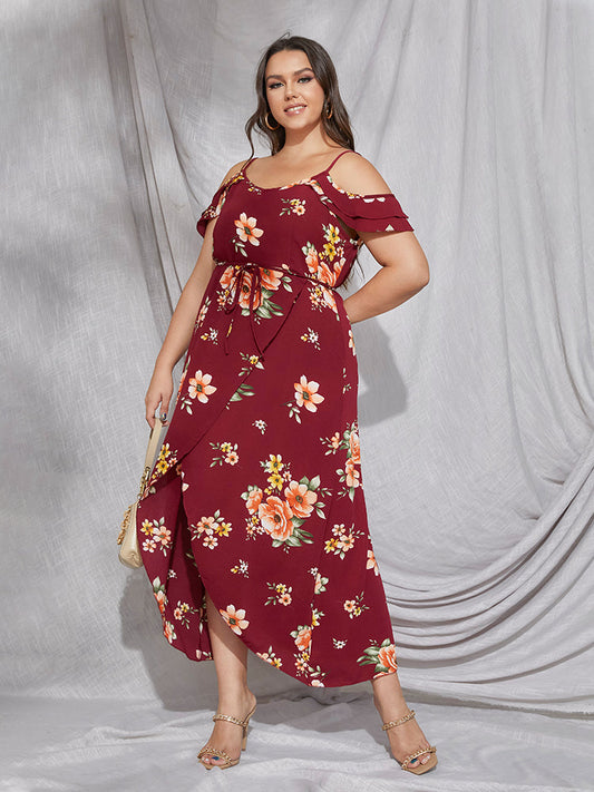 Floral Asymmetrical Ruffle Sleeve Dress