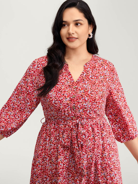 Plaid Collar Pleated Stretchy Waist Midi Dress