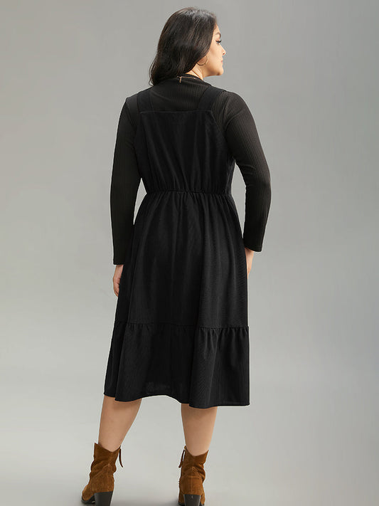 Corduroy Button Detail Ruffles Adjustable Straps Dress