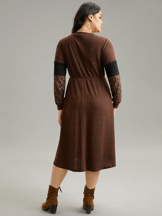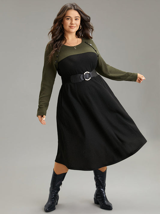 Colorblock Waffle Knit Pocket Drop Shoulder Dress