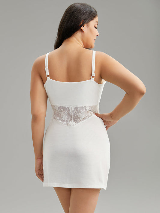 Contrast Lace Adjustable Straps Sleep Cami Dress