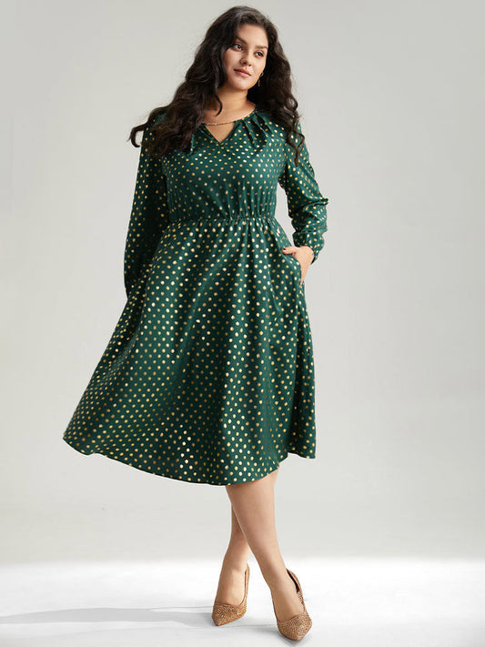 Glitter Polka Dot Notched Elastic Cuffs Dress