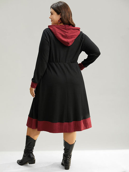 Christmas Textured Contrast Hooded Drawstring Dress