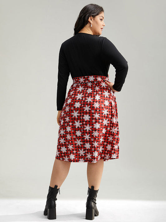 Christmas Plaid Crochet Lace Mesh Cut Out Dress