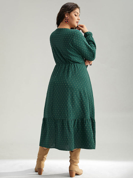 Christmas Boho Print Wrap Ruffle Layered Hem Dress