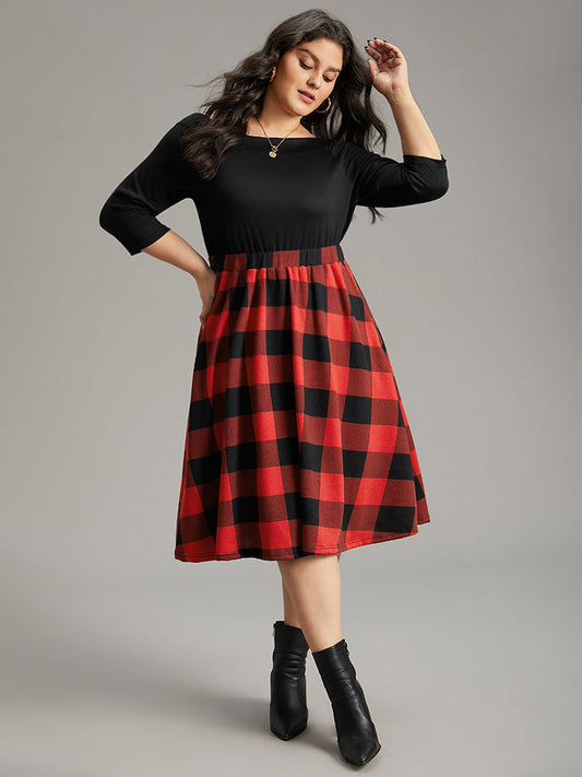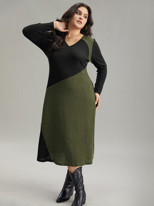 Glitter Contrast Lace Wrap Elastic Waist Dress