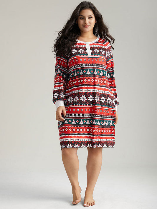Geometric Sleep Raglan Sleeve Button Up Dress