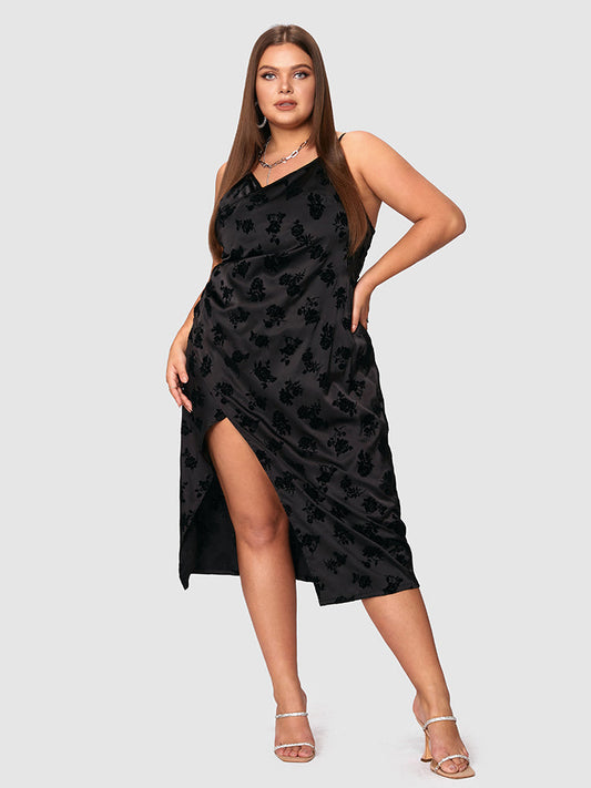 Flower Print Satin Split Cami Dress