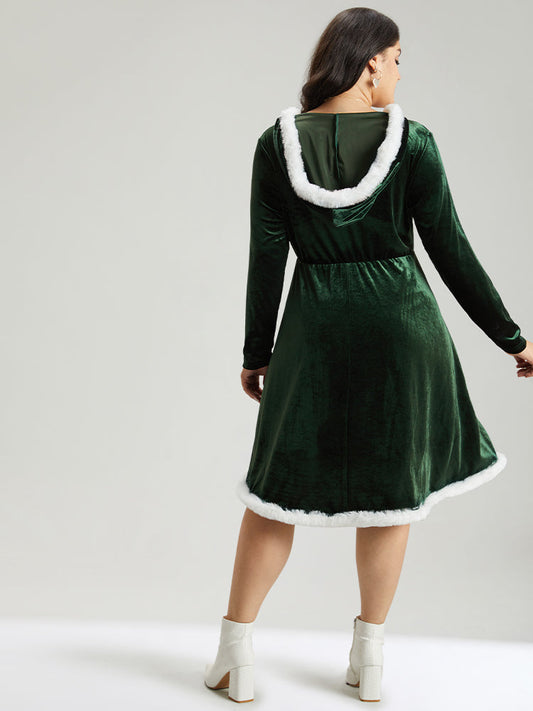 Velvet Fuzzy Trim Pocket Contrast Dress