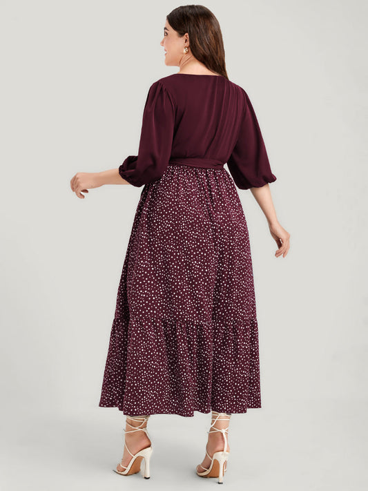 Polka Dot Split Lantern Sleeve Pocket Flutter Belted Dress