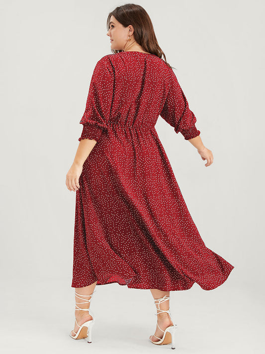 Polka Dot V Neck Pocket Elastic Waist Midi Dress