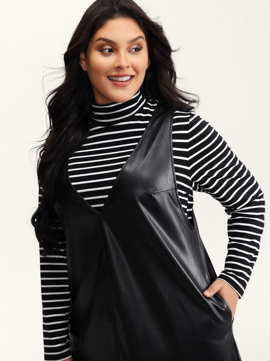 Leather V-Neck Sleeveless Sheath Dress