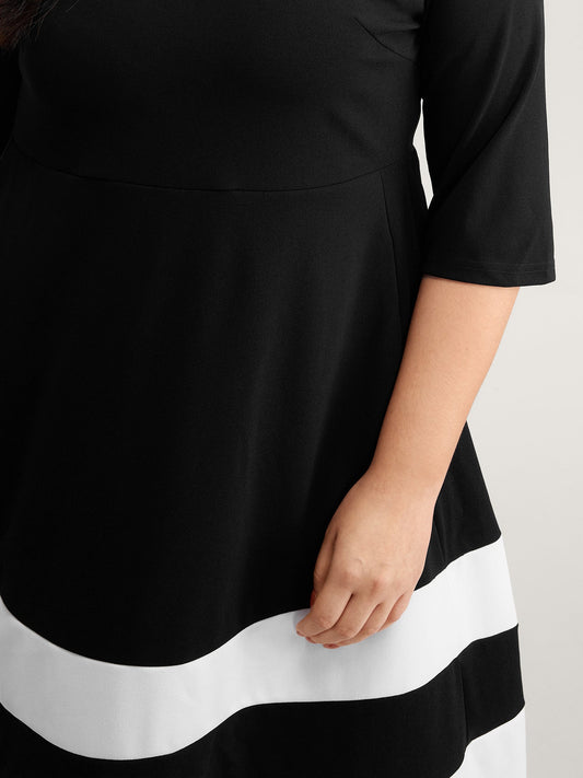 Textured Color Contrast Stretchy Midi Dress