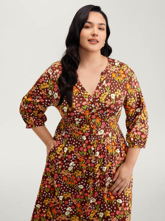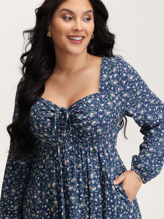 Floral Print Drawstring Bust-Ease Midi Dress