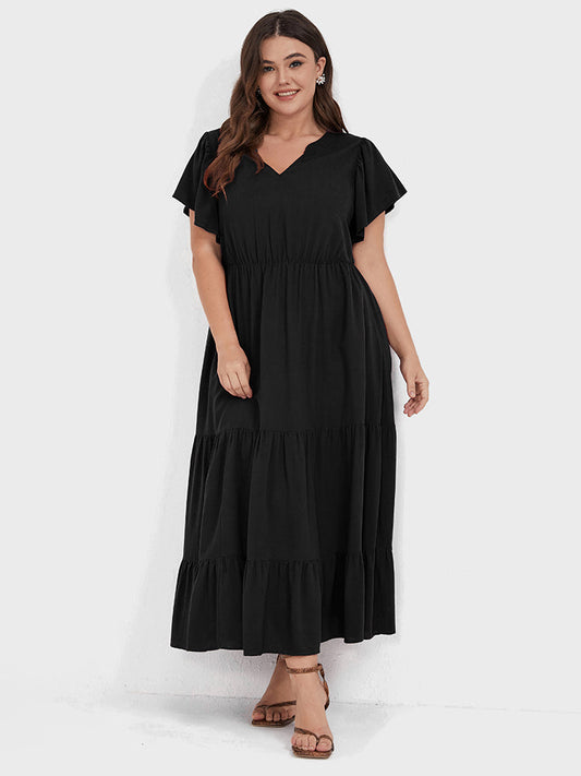 Solid Pocket Ruffles Hem Maxi Dress