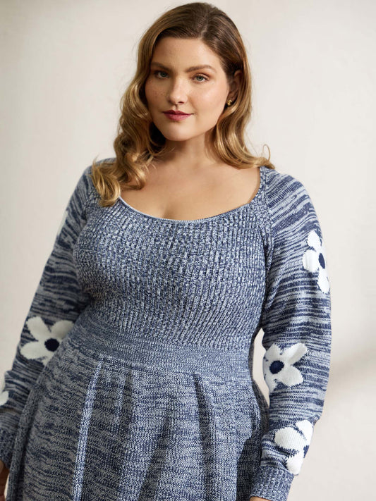 Floral Jacquard Print Mixed Yarn Knit Midi Dress