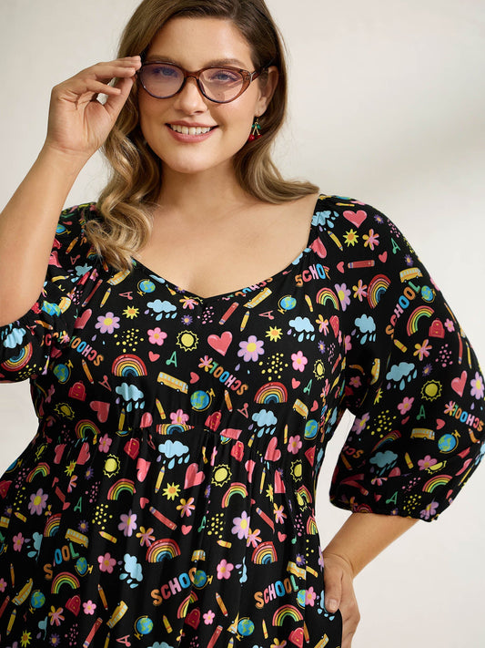 Alphabetical Print Drawstring Adjustable Waist Midi Dress