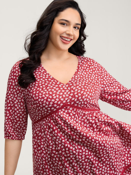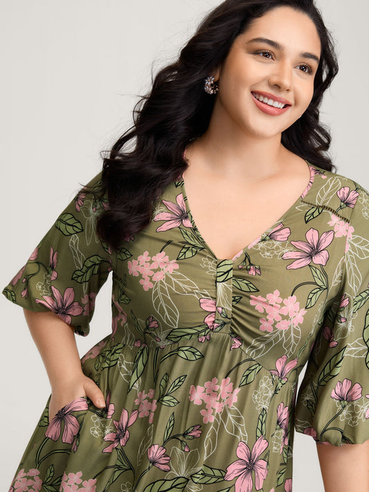 Floral Collage Print Lantern Sleeve Maxi Dress