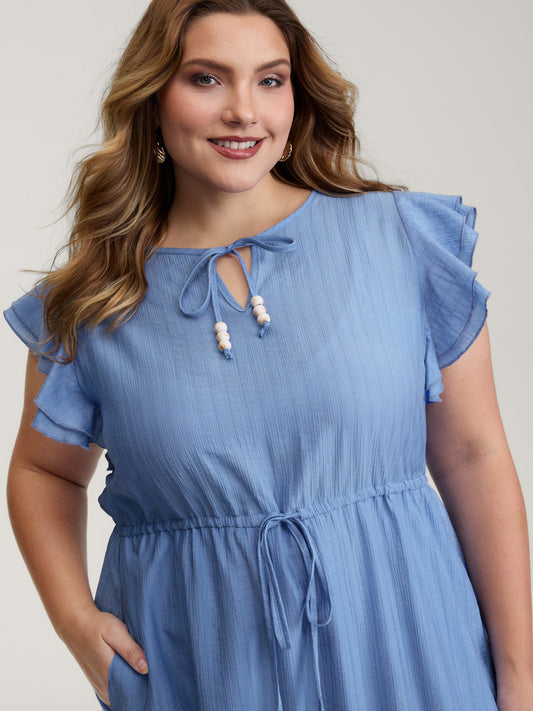 Flutter Sleeve Flowy Waist Drawstring Maxi Dress