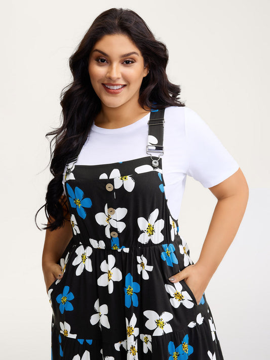 Floral Print Pockets Stretchy Waist Midi Dress
