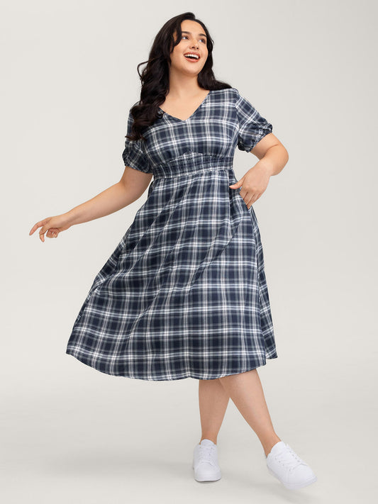 Plaid Print Back Bowknots Contrast Midi Dress