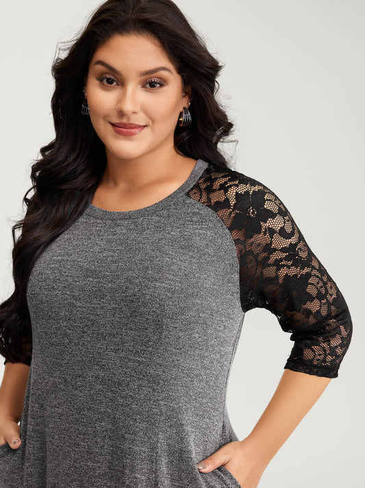 Supersoft Lace Sleeve Cinched-Waist Midi Dress