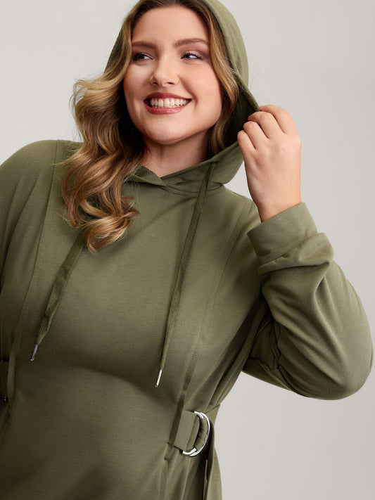 Kangaroo Pockets Contrast Edges Hoodie Knit Dress
