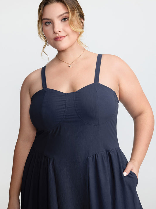 Shirred Stretchy Fit and Flare Midi Dress