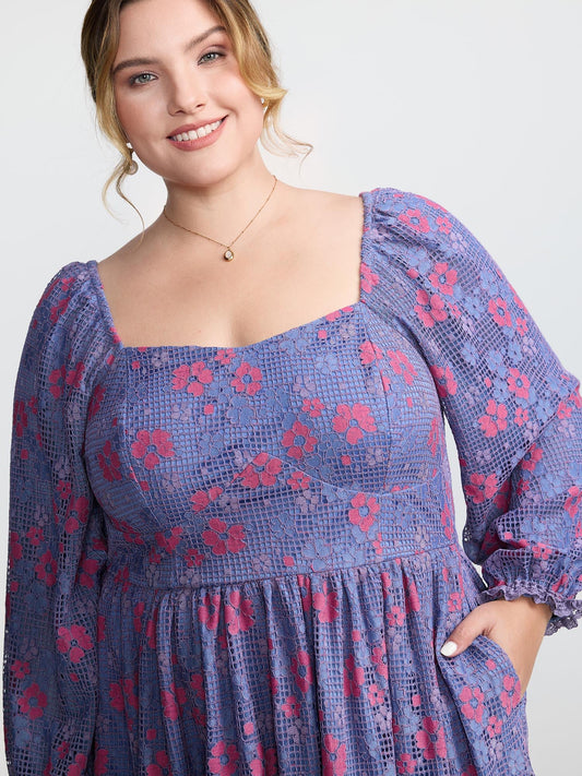 Floral Lace Stretchy Triangular Waist Midi Dress