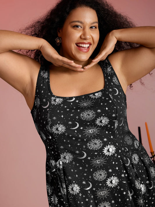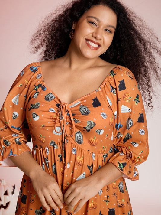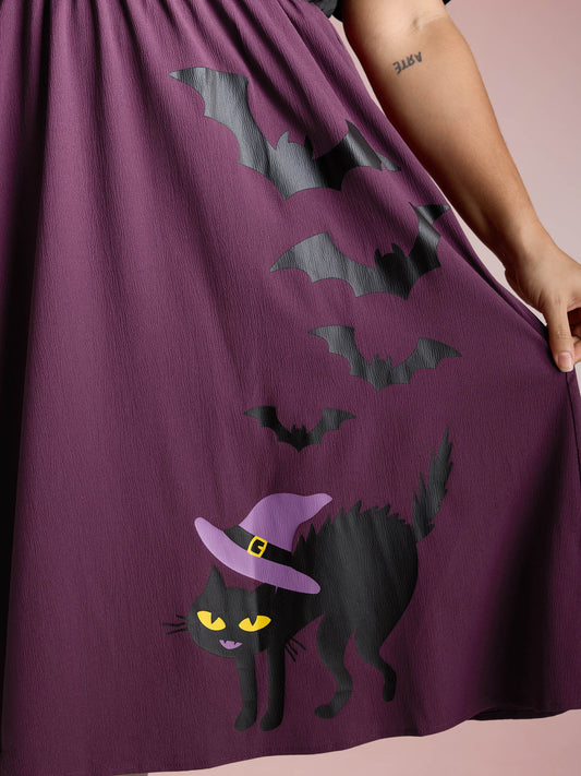 Cozy Hauntings Stretchy Waist Pockets Midi Dress
